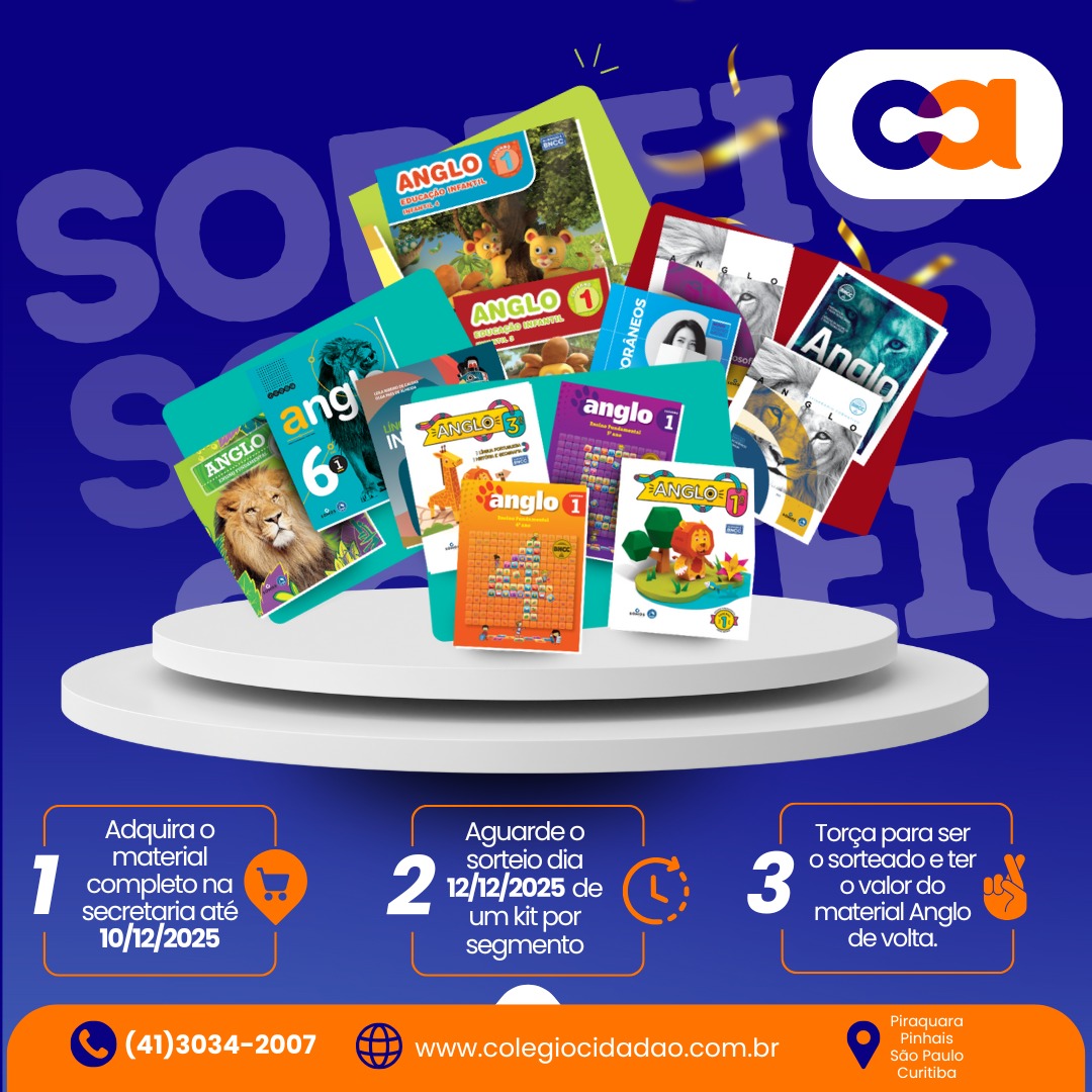 Serão sorteados três kits de material didático Anglo, sendo um por segmento, abrangendo as unidades do Colégio Cidadão do Amanhã: